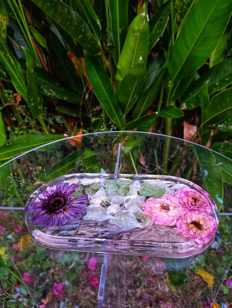 Os valores totais dos conjuntos já estão incluso o processo de preservação que leva em média 30 dias, só então depois da desidratação das flores vamos para o próximo passo, processo de resinagem, podemos então entregar as peças a partir de 30 dias a 90, tudo em contrato.